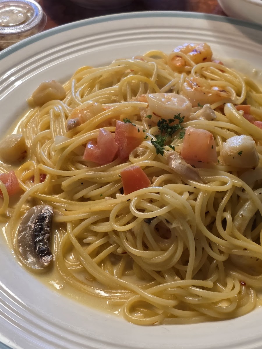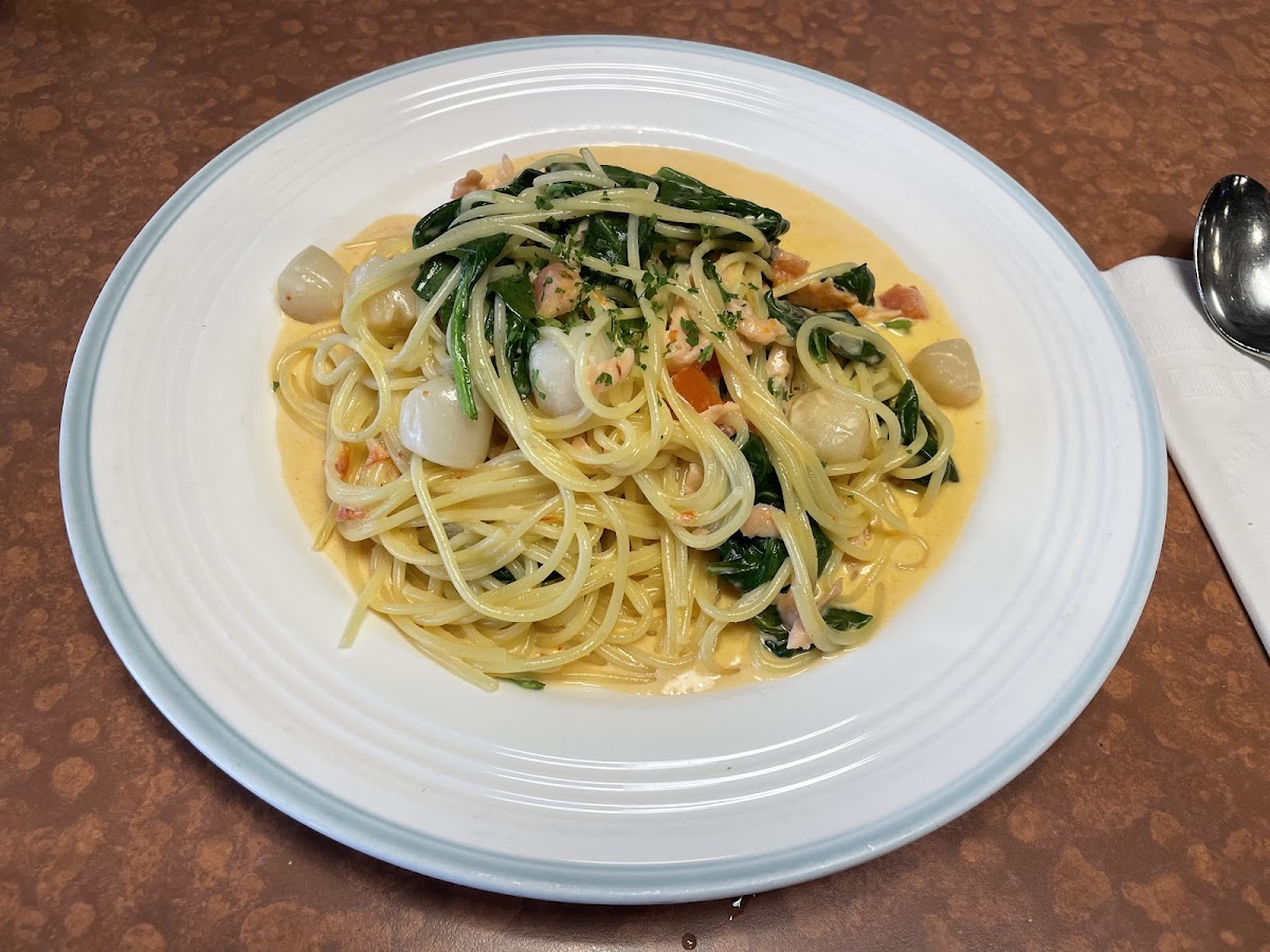 Salmon Scallop Spinach Cream Sauce Spaghetti
